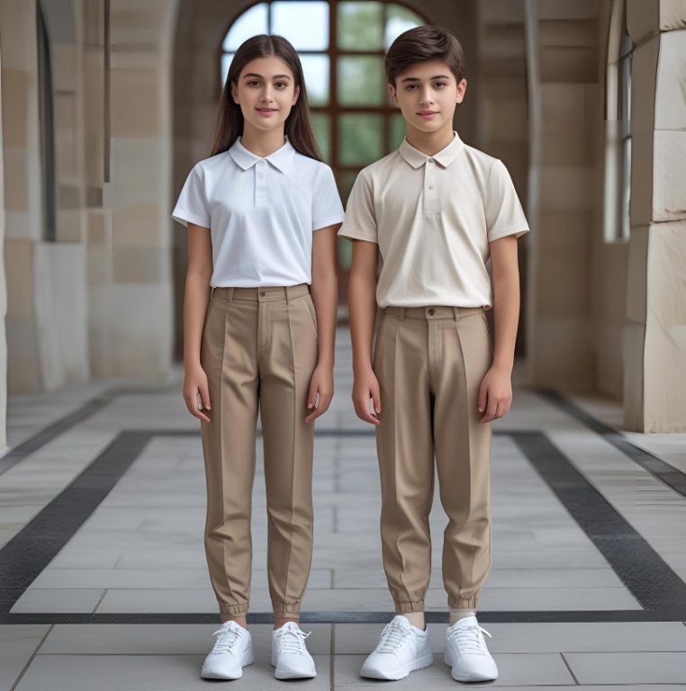 2025-2026 eğitim-öğretim yılı için öğrenci kıyafetlerimiz: tişört; yakalı, turuncu renk; pantolon ise düz bej renk olarak belirlenmiştir. Elinde önceki kıyafeti olan öğrencilerimiz, beyaz tişörtlerini giymeye devam edebilecektir. Kıyafetlerde arma ve logo olmamalıdır. Kıyafetler istenilen yerden temin edilebilir. (*Resimler yapay zeka kullanılarak üretilmiştir.)